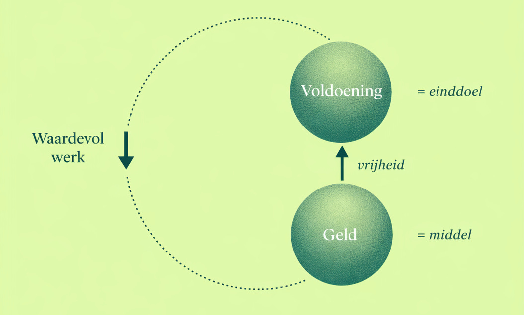 5. Vincent Kouters maakt met Betering de beste Nederlandstalige nieuwsbrief over persoonlijke financiën. In een ideale wereld is geld een middel om je vrijheid en autonomie veilig te stellen. Maar onlangs schreef Vincent over hoe geld de neiging heeft om ongemerkt een doel op zich te worden. Dat herken ik uit mijn eigen leven. Daarom heb ik deze infographic voor mezelf gemaakt. Elke keer dat ik Notion open, zie ik een visuele reminder dat ik geld verdien om de vrijheid te hebben te werken aan wat ik belangrijk vind.